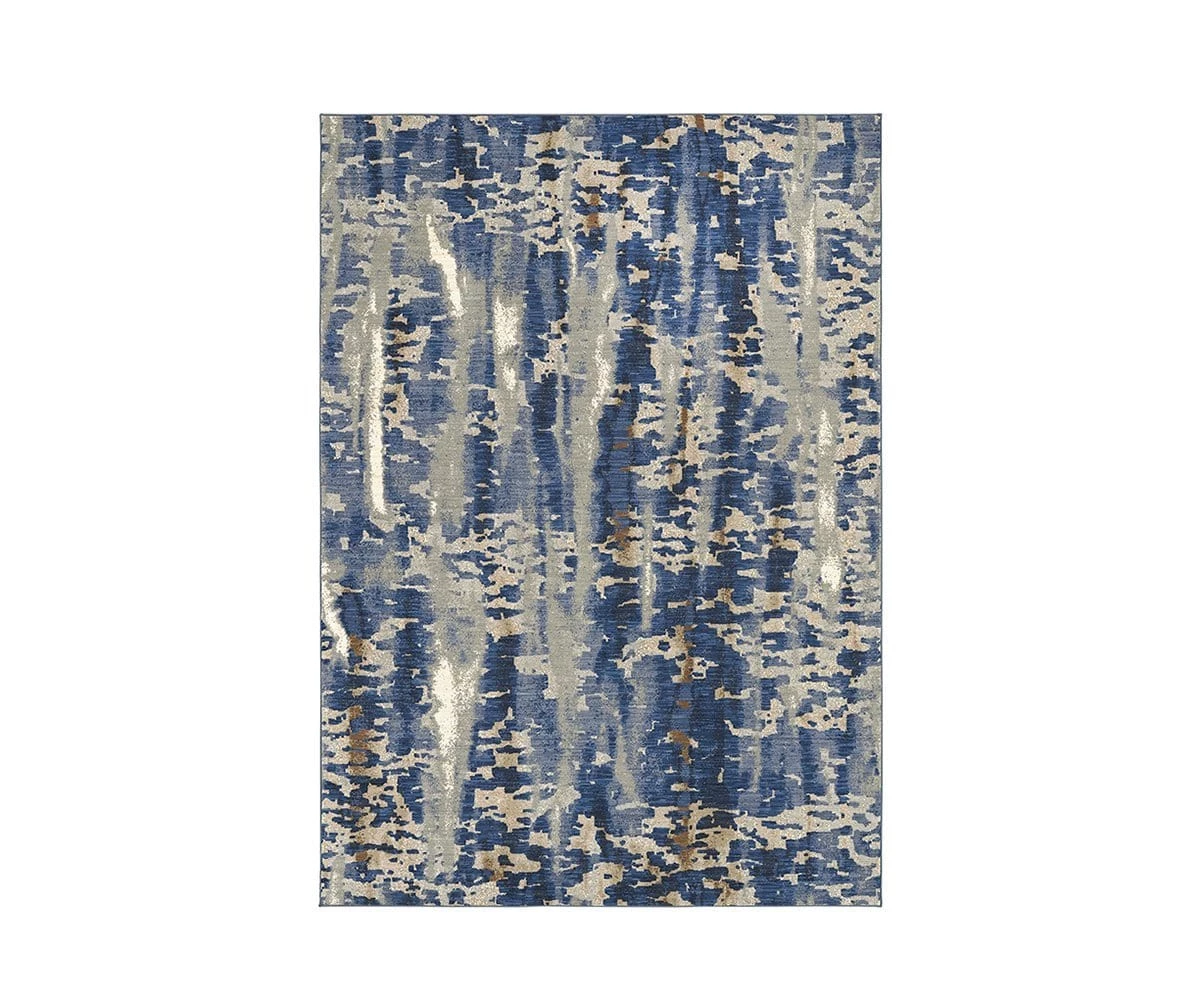 Modern, abstract, and striking, the Vortex Rug—designed and produced in the USA by Karastan, a leader in eco-friendly rugs—instantly refreshes any space in your home or office. Deep cobalt, beige, grey and flourishes of copper combine in an abstract design that utilizes fading, overdyeing, and speckled silhouettes to evoke the surface of water. This rug is crafted with SmartStrand®, an eco-friendly fiber made from renewable corn resources. It features built-in stain-resistance that will never wear or wash off and is smooth and silky to the touch.