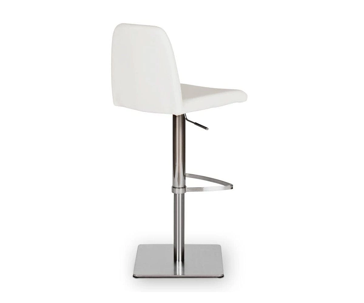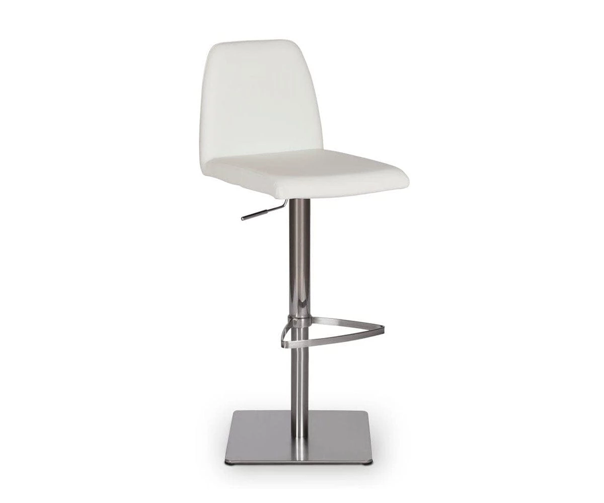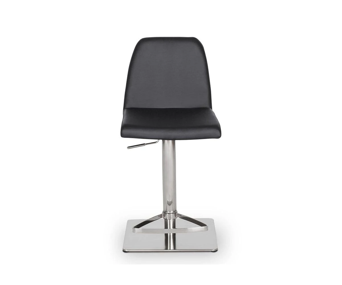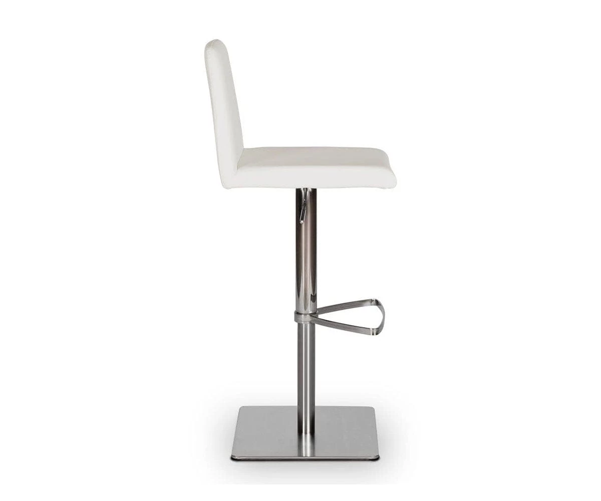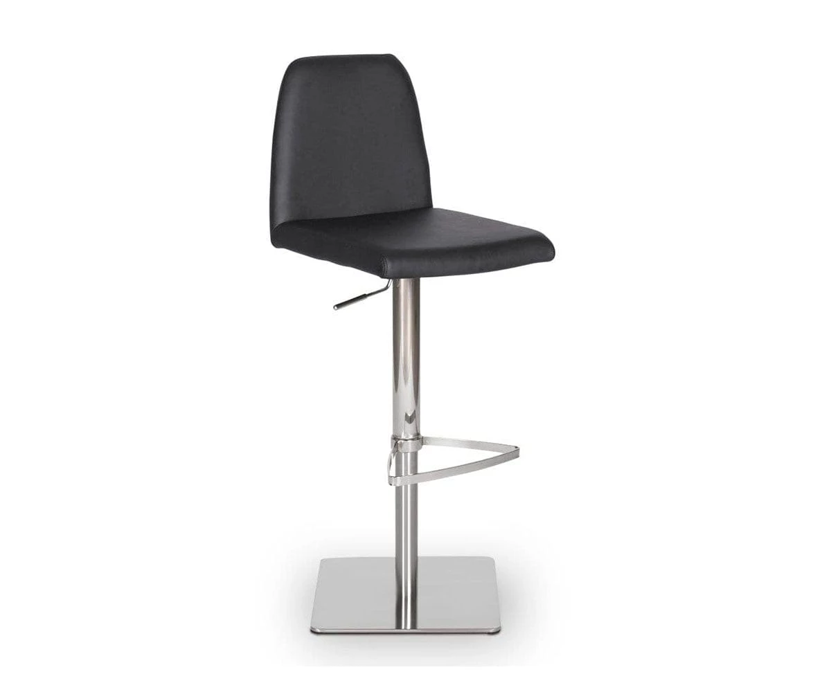 Classic comfort and minimalist modern style define the Amagi Adjustable Counter and Bar Stool pairing a nickel-plated metal and brushed stainless steel base with an understated seat cushion and back.