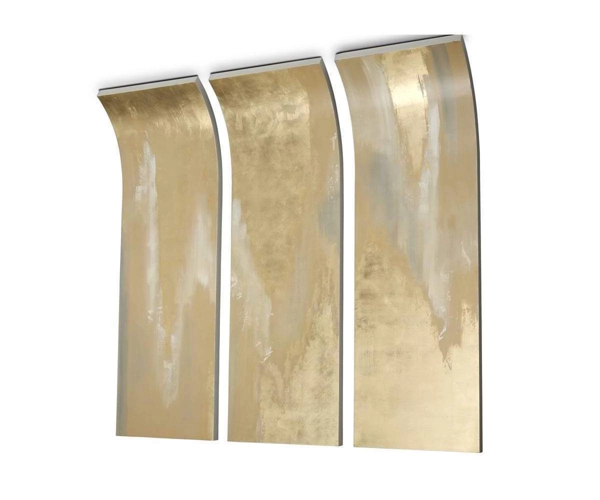 Blending the sensibilities of burnished brass and modern industrialism, the Shadow Colored Wall Art is a statement-maker in any household. Each three-piece design is crafted individually, making every one unique!