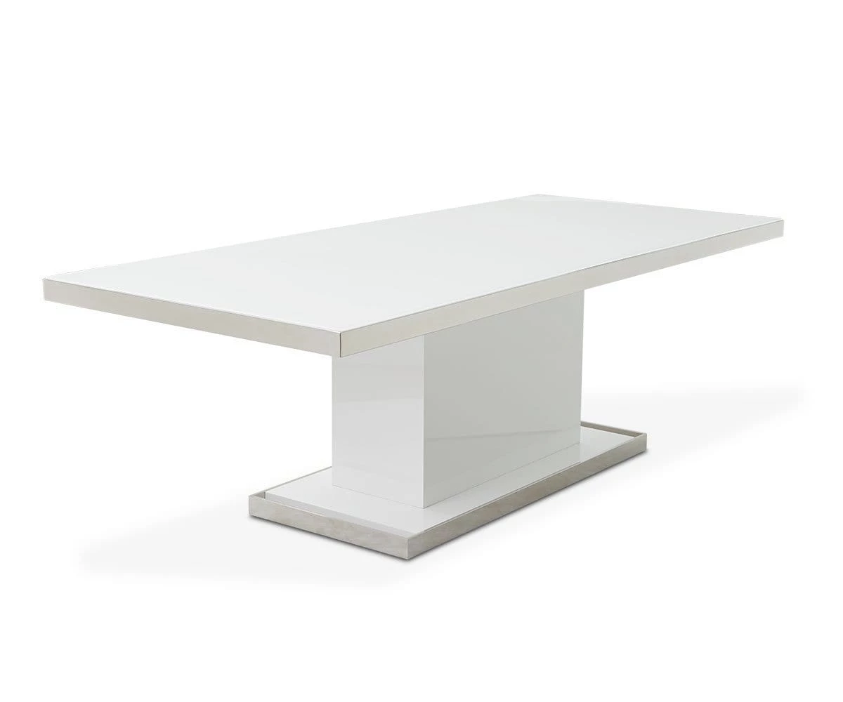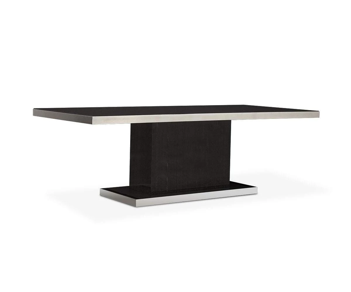 Establish a sleek and bold contemporary aesthetic in your dining room with the Svante 94” Dining Table. Comfortably serve eight as you gather around this distinctive piece featuring clean lines and a pedestal base trimmed in stainless steel.