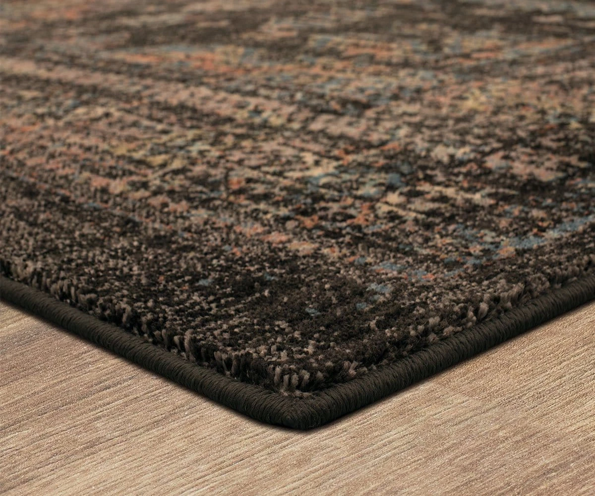 The Estate Somersby Black Rug has a traditional feel, and showcases darker tones meant to anchor any aesthetic. A natural patina lends this piece a sense of rustic, modern feel. This eco-friendly design was made in the USA from premium recycled plastic bottles that go through a transformation process to create strong, soft fibers. The result is this beautiful rug that offers superior durability and easy care while remaining remarkably soft to the touch.