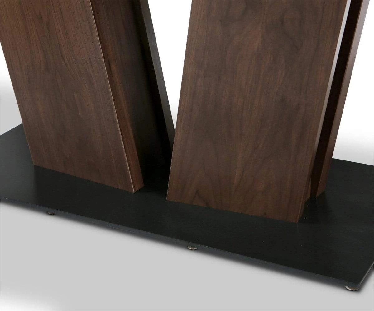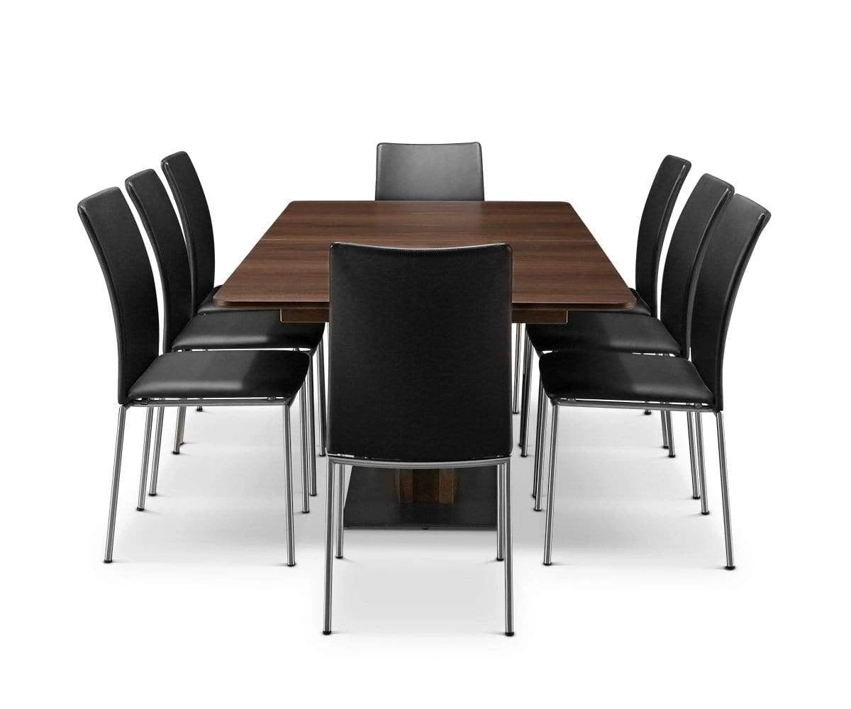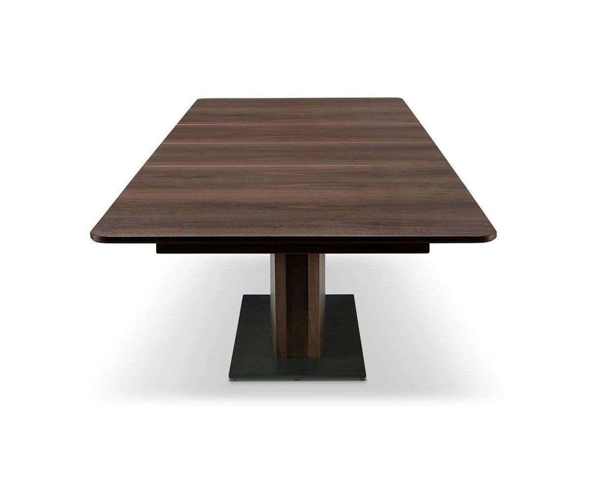 Celebrate the art of dining with the Thisted Extension Dining Table. The sculptural V-shaped base introduces a dynamic presence to your dining space, while the durable black metal foot plate blends stability with style. Two self-storing leaves are neatly hidden away, ready for guests when you are.