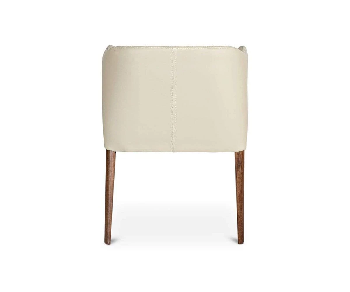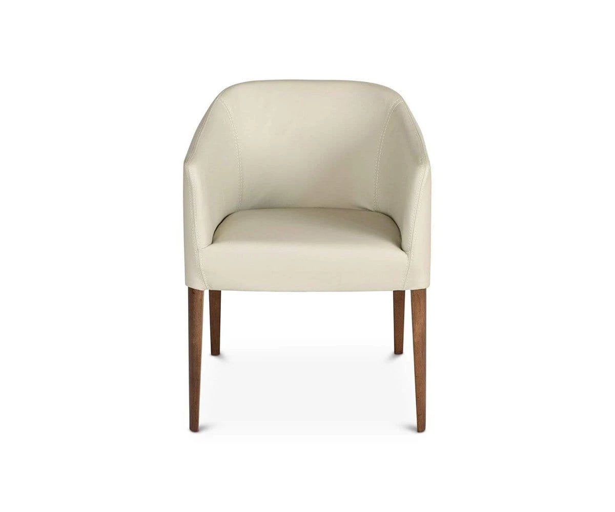 Casually elegant dining rooms will welcome the Lank Dining Chair. The comfortable bucket-style seat features beautiful leather upholstery and piping. The look is elevated with four rounded angled legs in a venge finish.