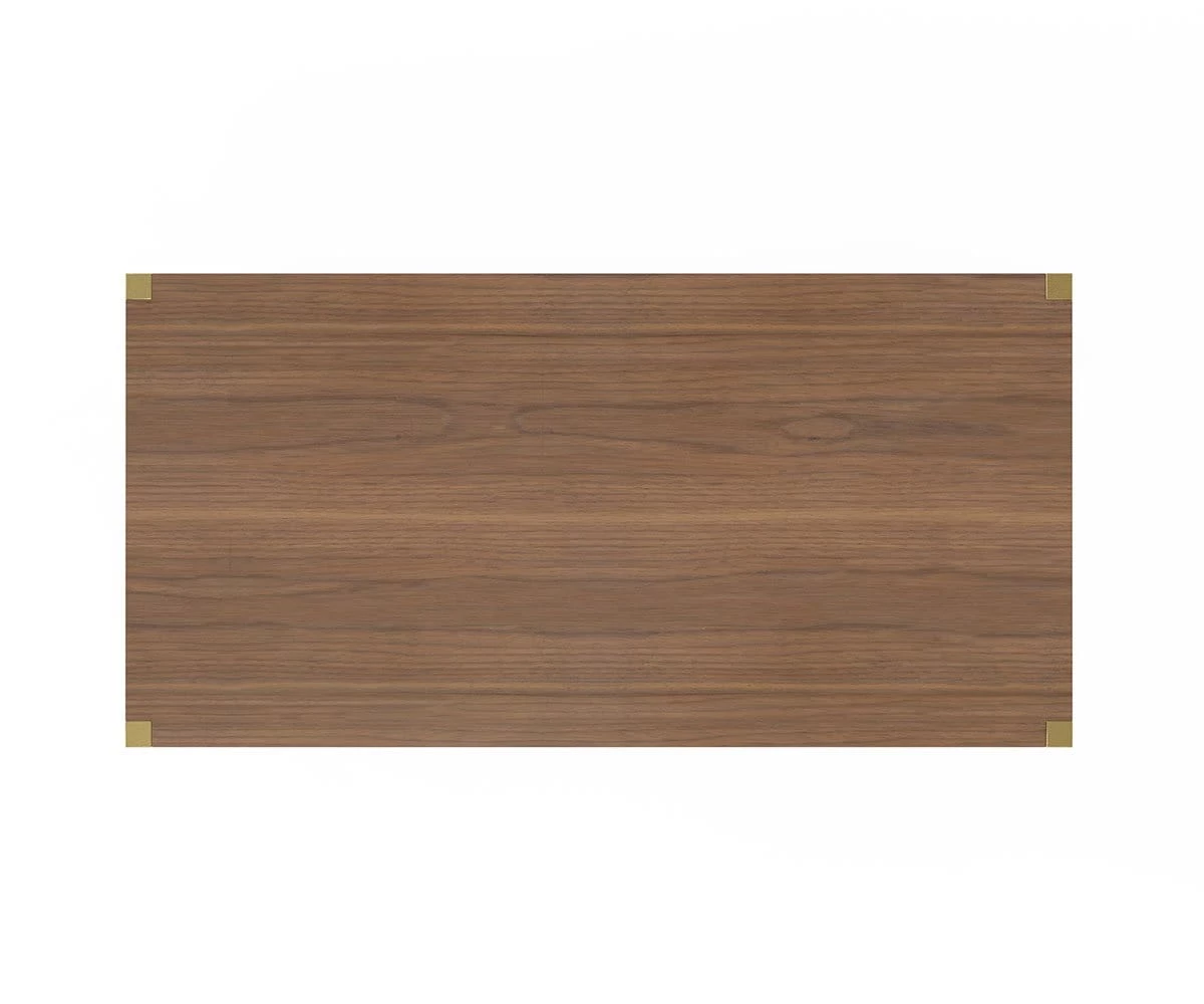 The Lennox Dining Table fills your dining room with an elegant sense of simplicity. Exuding timeless style, this dining table features a striking combination of warm walnut tones and polished brass accents. Four square legs punctuate the tabletop, giving this classic table silhouette a hint of contemporary flair. The light and airy design of this piece is transitional, making it well-suited to mesh with any number of decor styles. Place the Lennox Dining Table in your dining room for a streamlined look, or use it as a conference table in an office to bring a sense of order and clean, minimalistic design to your space.