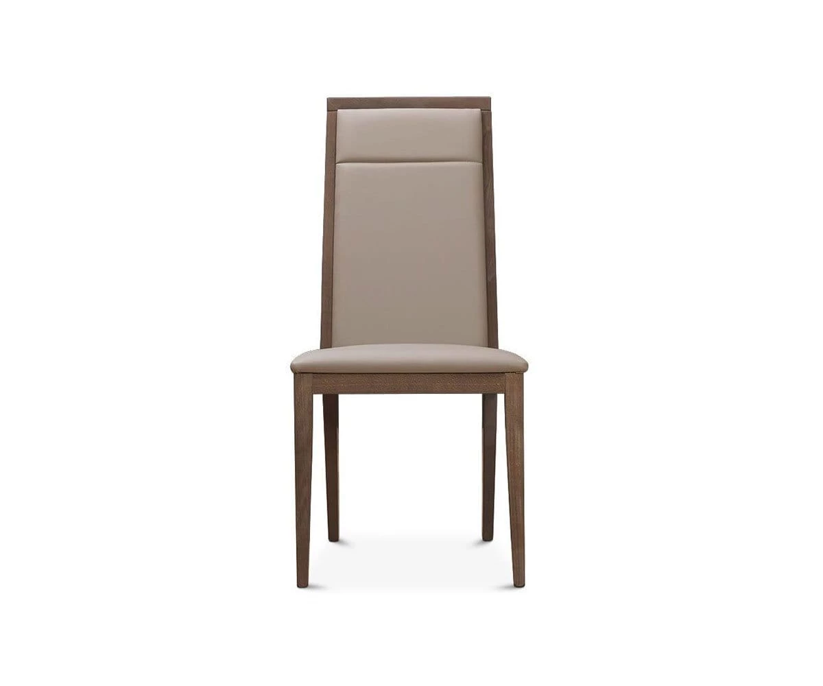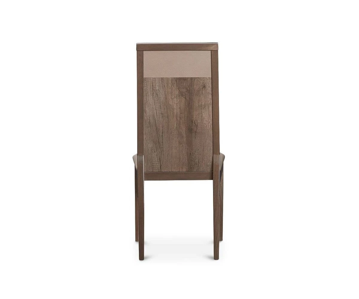 The Akana Dining Chair, made in Italy, is the perfect blend of sleek, contemporary design with natural rustic warmth. The brown tones and wood grain pattern shines under the high gloss finish. Sit comfortably at the table for hours and enjoy dining in style with the padded seat and back in taupe upholstery.